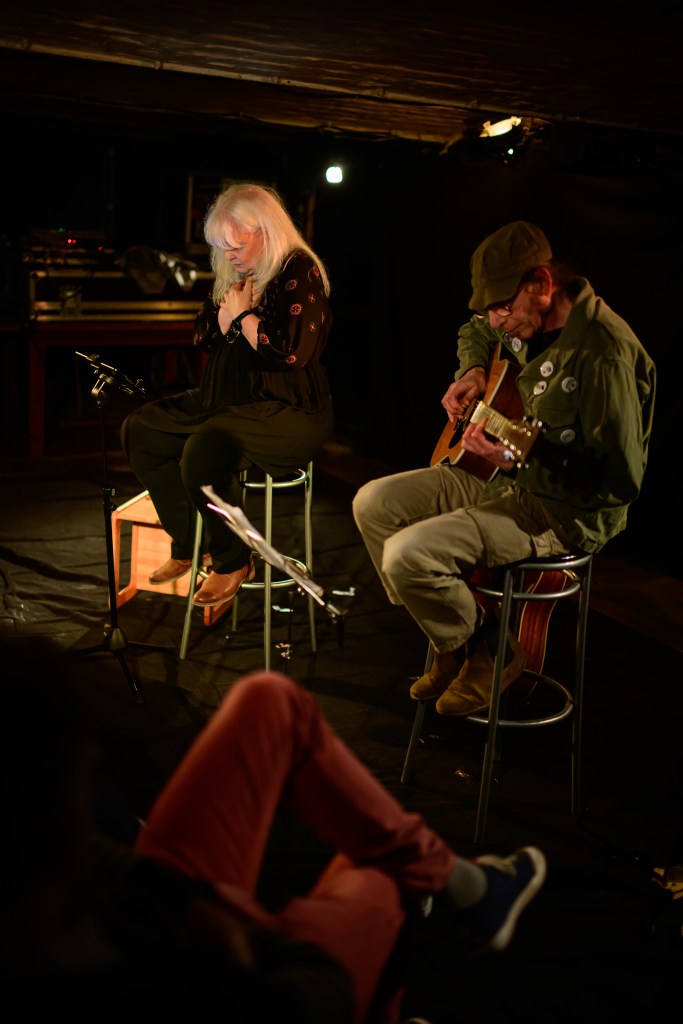 “ARE WE HERE?” New piece by Marjorie Van Halteren composed for and with pianist Barbara Dang. Field recordings, prepared piano,voice, electronics, semi-improvisation with graphic score. Pictured here at the Malterie in March.