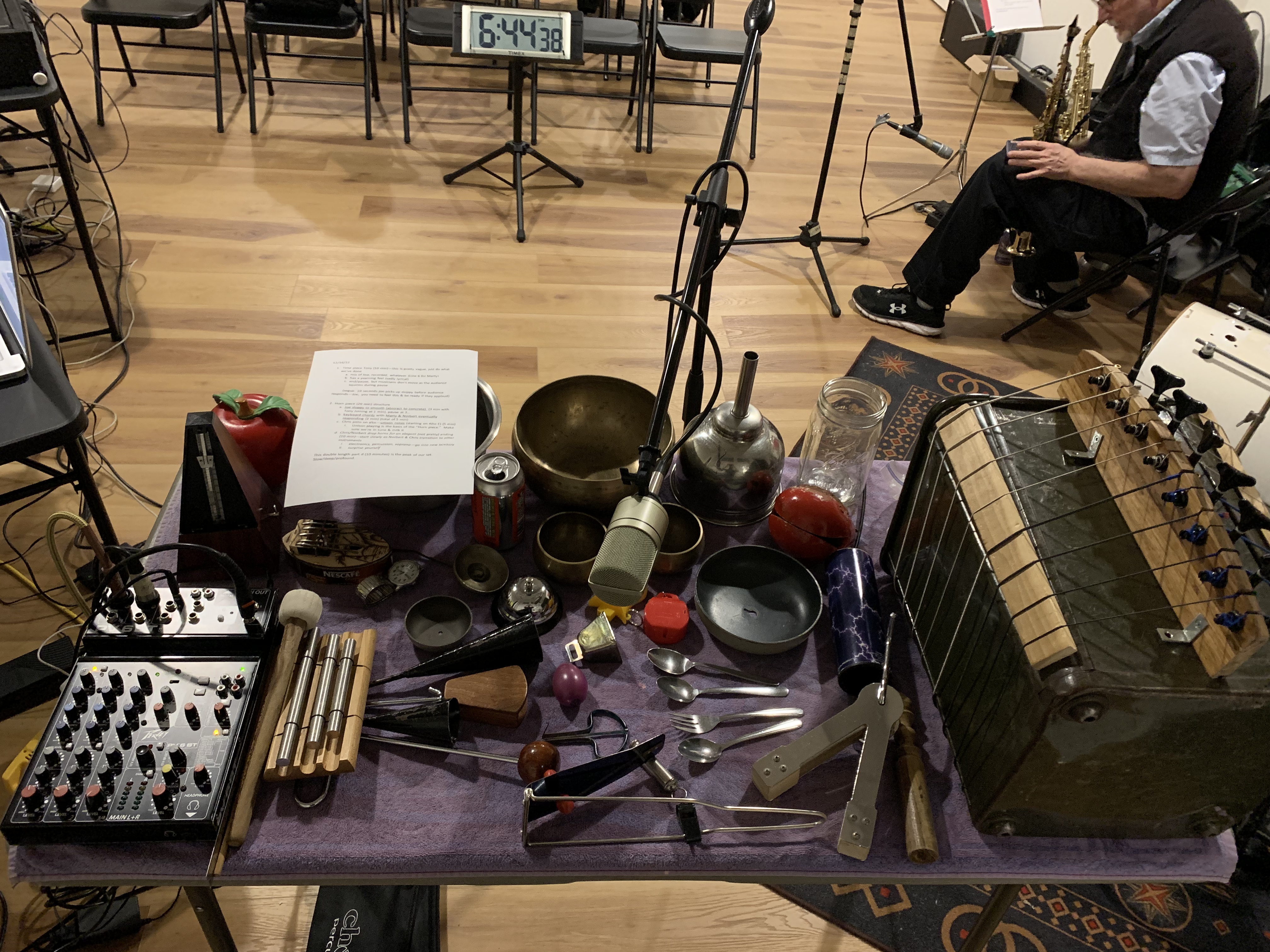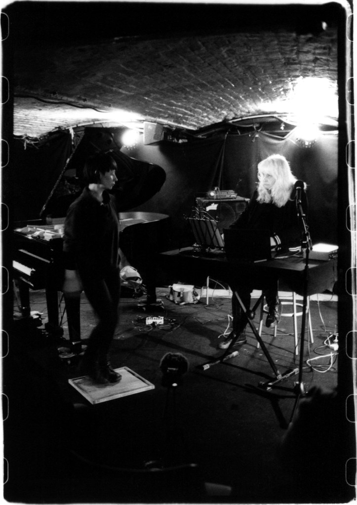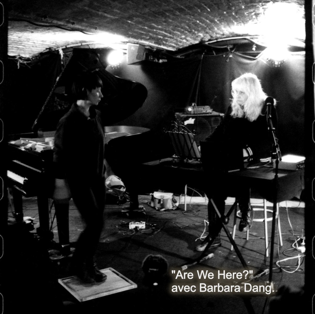 “ARE WE HERE?” New piece by Marjorie Van Halteren composed for and with pianist Barbara Dang. Field recordings, prepared piano,voice, electronics, semi-improvisation with graphic score. Pictured here at the Malterie in March.