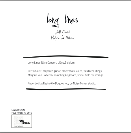 sampling keyboard, voice, field recordings and Jeff Gburek: prepared guitar, electronics, voice, field recordings live at L’An Vert, Liege, on the Plus Timbre net label.